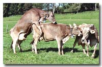 Die Brunst (Östrus) beginnt mit dem Eintritt in die Pubertät auf. Sie tritt in regelmässigen Abständen (meist 21 Tage) auf und ist das Zeichen für die Paarungsbereitschaft beim weiblichen Rind. Es besteht ein zeitlicher und funktioneller Zusammenhang mit dem Eisprung (Ovulation). Die brünstige Kuh ist unruhig und brüllt oft. Sie bespringt Artgenossinnen an Kopf und Rücken und bleibt selber stehen, wenn sie von hinten besprungen wird. Dieses Phänomen heisst Duldungsreflex. Man sagt auch: die Kuh steht. Wenn man ihr auf die Lenden drückt, biegt sie die Lendenwirbelsäule nach unten durch und sie wehrt sich nicht. Meist geben brünstige Tiere auch etwas weniger Milch. Von aussen erscheinen ihre Schamlippen (Vulvae) vergrössert und man kann aus der Scheide klaren Ausfluss beobachten. Dieser Schleim lässt sich zwischen den Fingern „spinnen“ (das heisst er hängt zwischen den gespreizten Fingern). Am Ende der Hauptbrunst oder anfangs Nachbrunst findet der Eisprung statt (Ovulation).