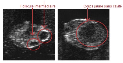 Il est possible que, durant la phase du corps jaune, 1 à 2 follicule(s) grandisse(nt) sur l’ovare. On parle alors de vague folliculaire et de follicules intermédiaires. Ces follicules meurent sans qu’il y ait d’ovulation. Le corps jaune ne se résorbe que lorsque de la prostaglandine est fabriquée par l’utérus non gravide.
